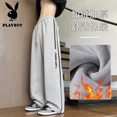 花花公子新款高品质摇粒绒 加绒加厚卫裤裤子男士 学生青少年卫裤