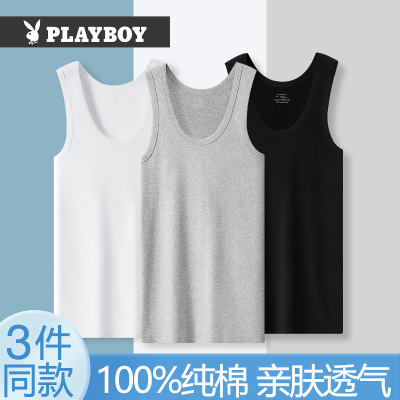 花花公子纯棉背心男士内穿打底运动男款全棉吸汗白色夏季打底汗衫