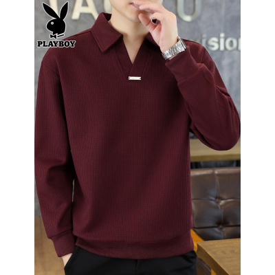 花花公子翻领卫衣男士2025年秋季新款打底上衣潮流红色长袖t恤男