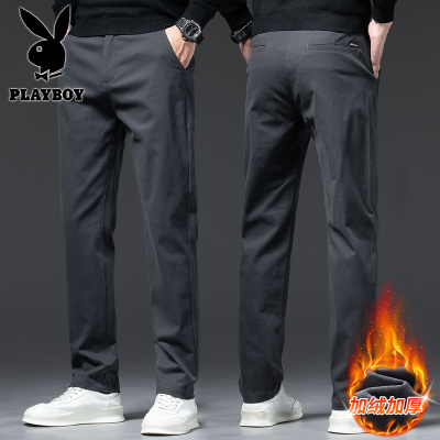花花公子新款高品质加绒秋冬款男士休闲裤男纯棉直筒宽松弹力轻商务长裤男装