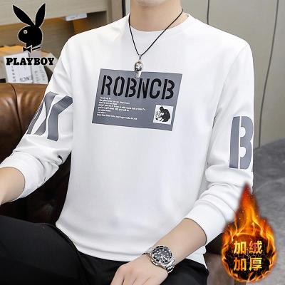 花花公子新款高品质1805加绒卫衣男加绒加厚潮流印花套头青少年冬季打底衫男
