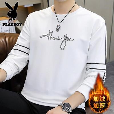 花花公子新款棉质复合奥利绒加绒加厚卫衣男青少年保暖冬季T恤打底衫