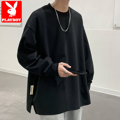 花花公子长袖t恤男士秋冬季宽松大码卫衣潮牌圆领无帽打底衫春秋