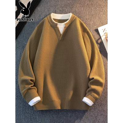 花花公子假两件毛衣男士秋冬季新款毛衫潮流宽松叠穿v领针织衫男