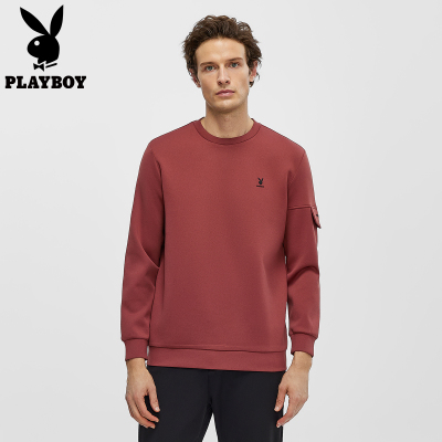 [细纹格]花花公子新款红色卫衣男士款商务休闲运动宽松圆领上衣