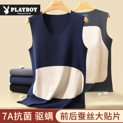 花花公子男士保暖背心贴片磨绒抑菌圆领无痕纯色秋冬打底