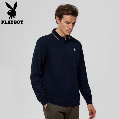 [含羊毛]花花公子男士polo长袖T恤衫商务休闲爸爸装2025年新款