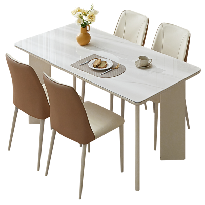 全友家居餐桌奶油风实木桌腿长方形钢化玻璃桌面吃饭桌客厅餐厅桌