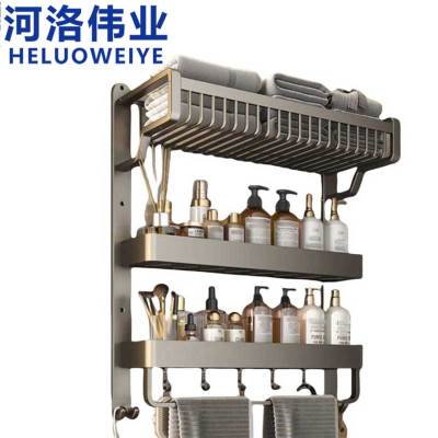 敬平浴室玻璃置物架太空铝毛巾架卫生间置物架壁挂镜前洗漱台架 双层双杆50cm浴室置物架