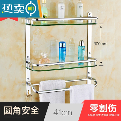敬平浴室玻璃置物架太空铝毛巾架卫生间置物架壁挂镜前洗漱台架 双层双杆40cm浴室置物架