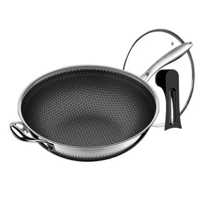 赫巴兹316不锈钢不粘锅炒锅平底家用蜂窝锅燃气灶电磁炉通用1310