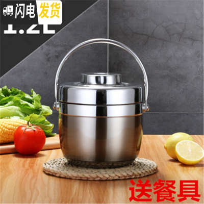 三维工匠手提304不锈钢保温双层提锅 6小时保温桶 1人2饭盒成人学生便当盒 304钢本色防溢1.2[送餐具]