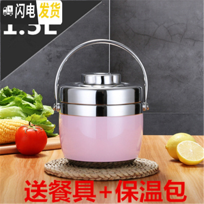 三维工匠手提304不锈钢保温双层提锅 6小时保温桶 1人2饭盒成人学生便当盒 304北欧粉1.5[餐具保温包]