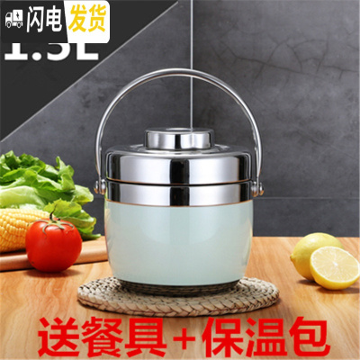 三维工匠手提304不锈钢保温双层提锅 6小时保温桶 1人2饭盒成人学生便当盒 304北欧绿1.5[餐具保温包]