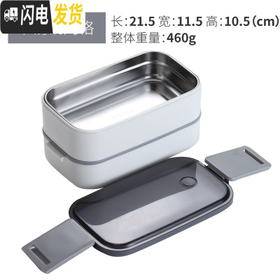 三维工匠学生304不锈钢饭盒双层带盖保温桶上班族1人微波炉加热食堂便当盒 不锈钢双层-白色送筷勺