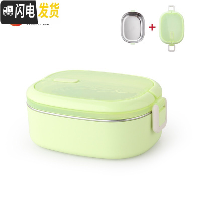 三维工匠304不锈钢饭盒保温双层带盖手提便当盒学生成人2层3三层多层餐盒 绿色单层单格/赠餐具套装