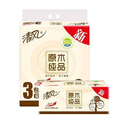清风 抽纸 原木纯品二层150抽*3包中规格(中幅)抽取式纸巾卫生纸餐巾纸面巾纸