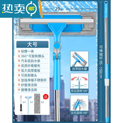 敬平擦玻璃器伸缩杆双面擦窗器刷搽刮水器高楼清洁清洗窗户工具家用 超大号蓝[自带刮刀+万向伸缩杆]送纱窗刷+窗槽