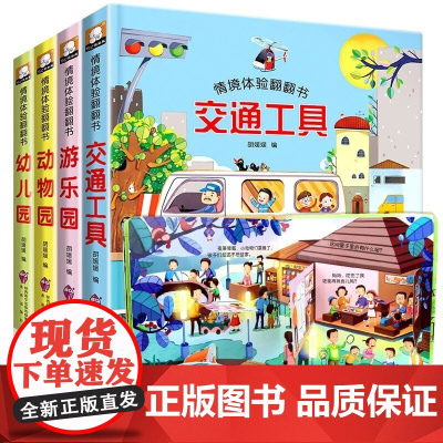 情景体验翻翻书4册 儿童书籍绘本0-3-6岁宝宝看图识物书1-2岁早教 益智撕不烂宝宝故事书婴幼儿书籍图书启蒙翻翻看 奇