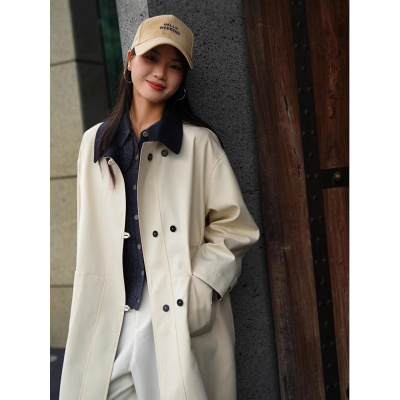 中长款风衣外套女年春秋季新款高级感宽松休闲撞色拼接大衣