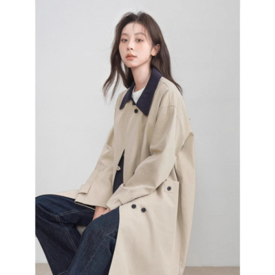 英伦撞色拼接风衣女年春秋新款卡其色高级感小个子大衣外套
