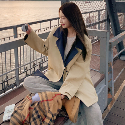 高级感气质休闲风衣外套女年显瘦新款韩系拼接撞色双排扣上衣