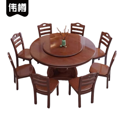 伟樽实木餐桌180*180*74cm+椅子*12套