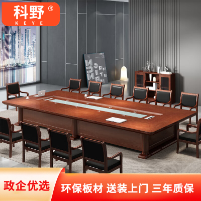 科野 会议桌红胡桃油漆贴皮长桌现代大型洽谈桌