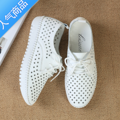SUNTEK2023春夏女鞋镂空透气小白鞋女软皮平底休闲单鞋女软底网面鞋