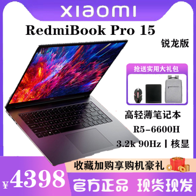 小米/RedmiBook Pro 15锐龙版 R5-6600H/16G/512G/15英寸高性能笔记本电脑轻薄便携学生学习商务办公全金属长续航