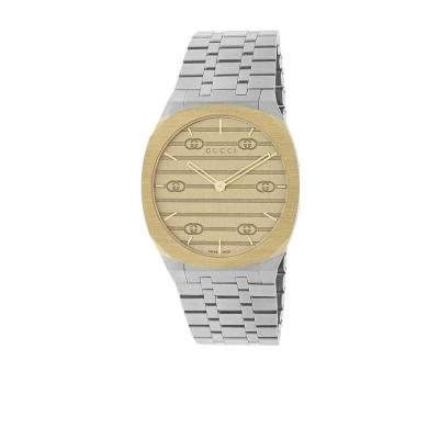 Gucci 古驰男士徽标手表交织字母细节银色钢带石英表 YA163501