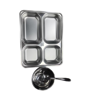 蓝枫304不锈钢餐盘+碗+勺子+筷子