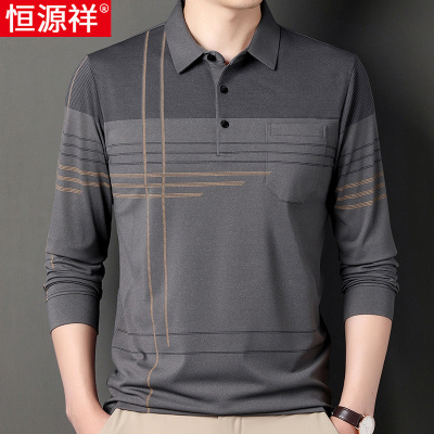 恒源祥中老年男士长袖t恤40岁50有兜带领Polo衫宽松爸爸秋装上衣