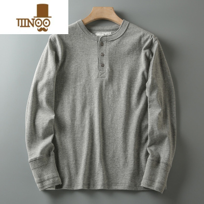 YANXU新款 美式休闲亨利衫男士复古简约百搭纯色日常长袖T恤衫打底