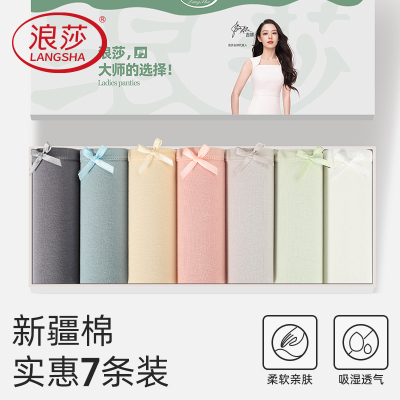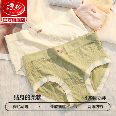 7条浪莎纯棉内裤女中腰秋季少女性感可爱女生无痕新款女士内裤