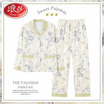 浪莎2025新款睡衣女春秋妈妈纯棉女士长袖长裤女款全棉家居服套装