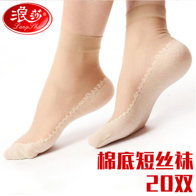 浪莎短丝袜女士春夏秋季薄款纯色水晶丝肉色耐磨舒适透气肤色休闲袜20双