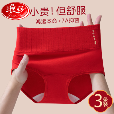 浪莎本命年大红色内裤女士纯棉蛇年结婚内衣袜子礼物高腰全棉短裤