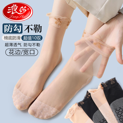 浪莎丝袜女士夏季超薄防勾丝棉底防滑薄款无痕透明隐形肉色水晶丝