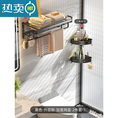 敬平卫生间毛巾架免打孔浴室厕所置物架壁挂衣服收纳太空铝黑色浴巾架 店长推荐♥2022升级款-加宽网篮-两件套9浴室置物架