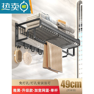 敬平卫生间毛巾架免打孔浴室厕所置物架壁挂衣服收纳太空铝黑色浴巾架 店长推荐♥2022升级款-加宽网篮单杆49c浴室置物架
