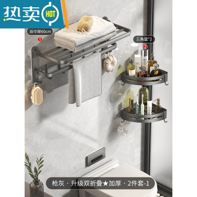 敬平枪灰色毛巾架免打太空铝浴室置物架卫生间厕所浴巾架壁挂洗手间 枪灰2022升级双折叠★加厚二件套2-9991