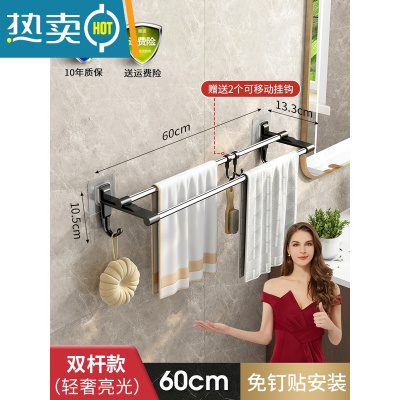 敬平免打孔不锈钢毛巾架厕所挂杆单双杆卫生间浴巾收纳架壁挂浴室挂件 F款 亮光 毛巾杆❤双杆60CM (送2移动浴室置物架