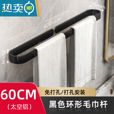敬平免打孔毛巾架卫生间太空铝浴巾架浴室挂架子厕所置物架毛巾杆单杆 北欧黑色U型毛巾架60CM-免打孔 承重10浴室置物架