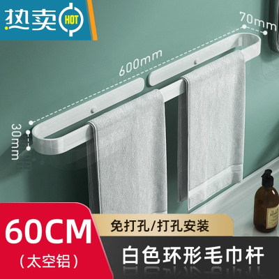 敬平免打孔毛巾架卫生间太空铝浴巾架浴室挂架子厕所置物架毛巾杆单杆 北欧白色U型毛巾架60CM-免打孔 承重10浴室置物架
