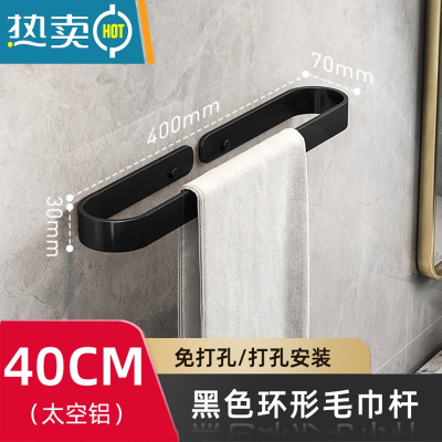 敬平免打孔毛巾架卫生间太空铝浴巾架浴室挂架子厕所置物架毛巾杆单杆 北欧黑色U型毛巾架40CM-免打孔 承重10浴室置物架