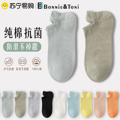 Bonnie&Toni纯棉抗菌抗起球不掉跟男女夏透气护耳船袜子