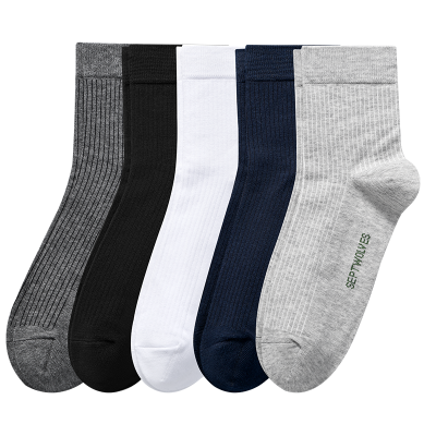 七匹狼纯棉5双装男士全棉男式中筒纯棉商务运动袜男士袜子