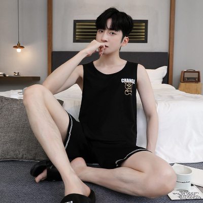 新款睡衣男士夏季短袖背心薄款短裤印花卡通休闲套装可外穿