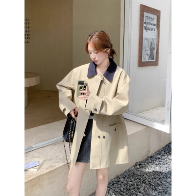 韩系高级感撞色翻领风衣外套女年秋季新款休闲小个子短款大衣